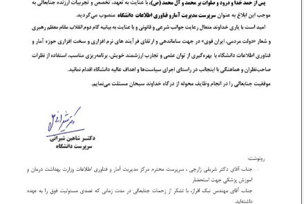انتصاب سرپرست مدیریت آمار و فناوری اطلاعات دانشگاه