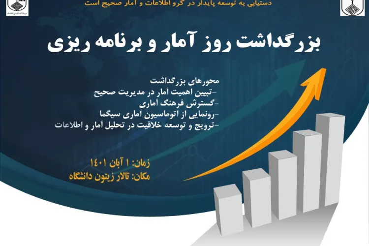 با توجه به اینکه اول آبان ماه در تقویم شمسی به عنوان روز آمار و برنامه ریزی تعیین شده است، در راستای بزرگداشت روز مذکور مراسمی در تاریخ یک شنبه 1401/08/01 در سالن زیتون واقع در مرکز مطالعات و توسعه آموزش پزشکی(EDC) با حضور مدیردفتر ریاست، معاونین دانشگاه و رابطین آماری مراکز تابعه دانشگاه برگزار می گردد.
