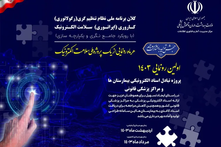 در قالب یک کار مشترک، استقرار پروژه تبادل اسناد الکترونیکی بیمارستان ها و مراکز پزشکی قانونی در چهارچوب نظام تنظیم گری - کاروری با حضور جناب آقای دکتر مسجدی رئیس محترم سازمان پزشکی قانونی و جناب آقای دکتر مظهری رئیس مرکز مدیریت آمار و فناوری اطلاعات به صورت آزمایشی مورد بهره برداری قرار گرفت.