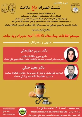 موضوع جلسه: سیستم اطلاعات بیمارستان(HIS): آنچه مدیران باید بدانند